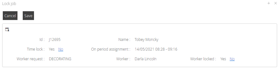 Clicking Yes or No for Time or Worker lock will set the required values. Once selected, click Save.