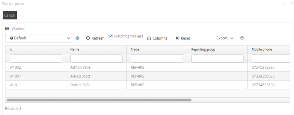 Select a new Worker from the list and it will take you back to the reassign job pop up.