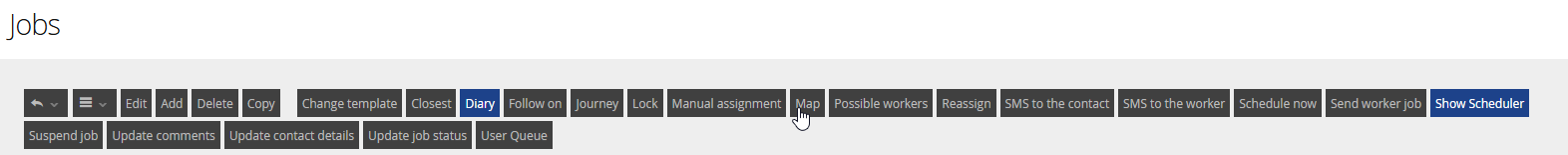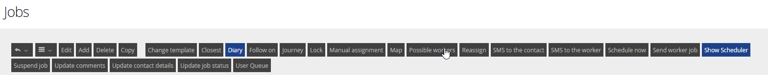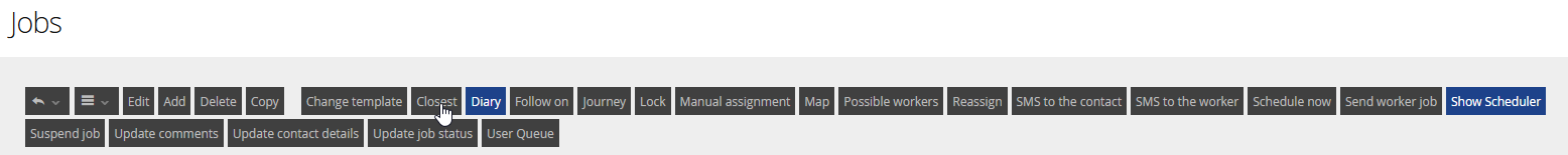 Most of these functions are available as buttons at the top of your Jobs view.
