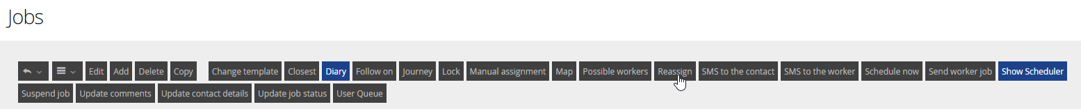 Jobs can be reassigned from the jobs view or from the action menu within the diary.