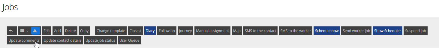 You can update comments from the Job screen, the Job details screen or within the diary using the action buttons.