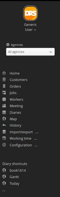 Within DRS, the menu items are displayed on the left side of the application window.