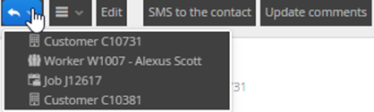 The Back Button can be found on all menus where table data is displayed. You can use this to navigate back through your previous selections. Clicking on the chevron will display the last selected objects. Clicking one will take you to that object.