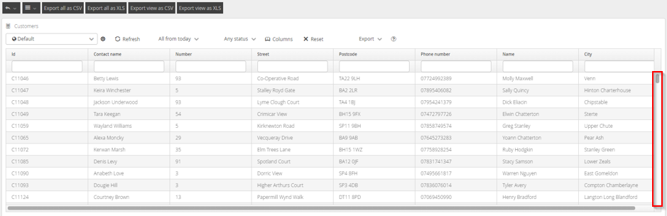 Access to the data not seen on a single screen is now controlled by scroll bars on the right side of the various data tables. There is no pagination in DRS v6. All data returns are limited to 1000 records maximum but where more detail is available, this can be accessed through filtering or the use of the Export function.