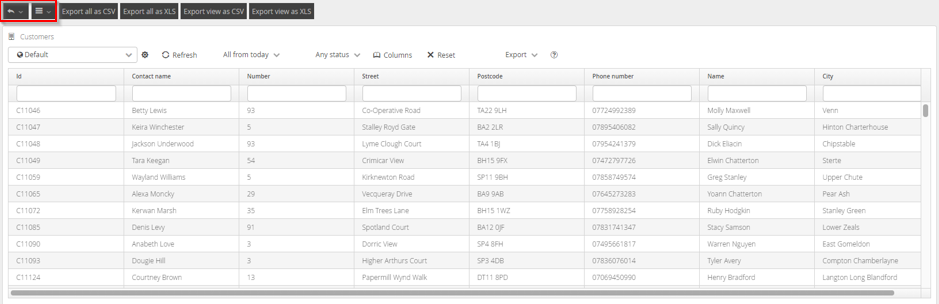 Customers | When selected will take users to the customer screen displaying a list of customers in the view. |