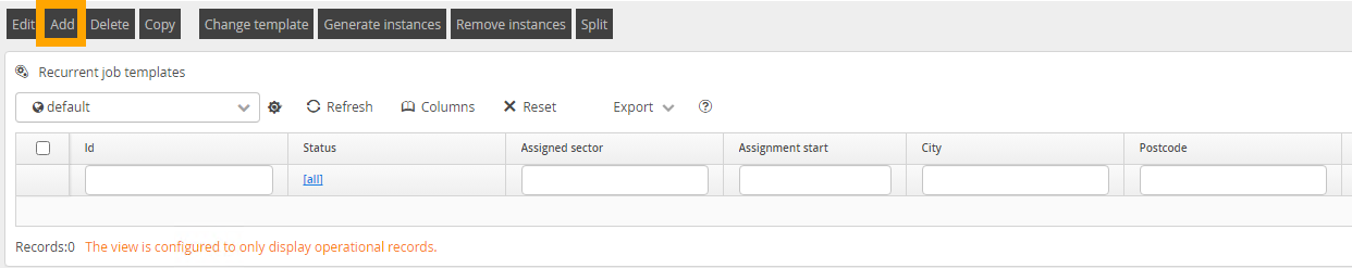 Navigate to the Order, scroll down to the Recurring Job Templates region and click Add.