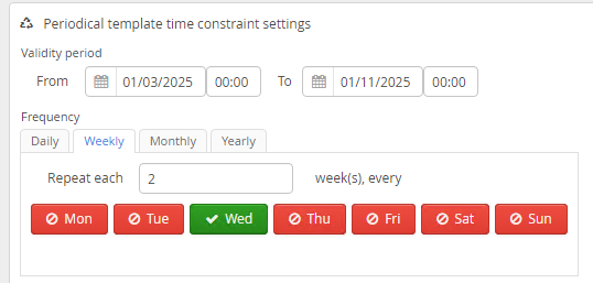 Scroll up to the 'Periodical template time constraints settings' region and enter the appropriate settings.
