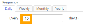 Daily. The below example will create a job for every 10th day: 1st March, 11th March, 21st March etc.