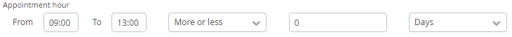 This example sets the time constraints to start at 1pm and end at 5pm, with a tolerance of 4 days after. If the frequency stipulates that the job should be created for 5th March, this will allow the job to be assigned between 1pm on the 5th March and 3:30pm on the 9th March.