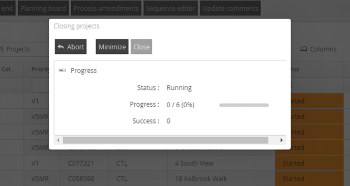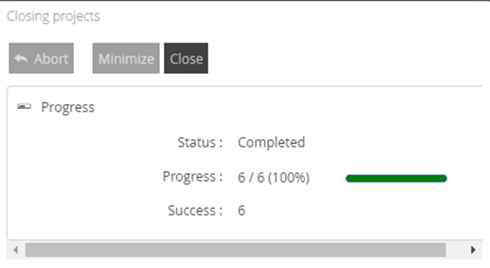 The Complete Project function, when used over single large projects, or multiple projects, can take a long time to run due to the number of individual requests that are needed to close down your projects. This is a long running task which limits your continual use of the product while this function is running.