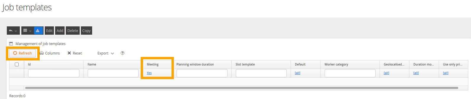 Change the meeting filter to Yes, then click Refresh.
