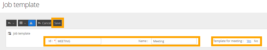 Enter a unique Id and Name, set Template for meeting to Yes, then click Save.