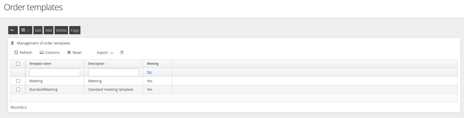 Configure a Meeting Service Order Template