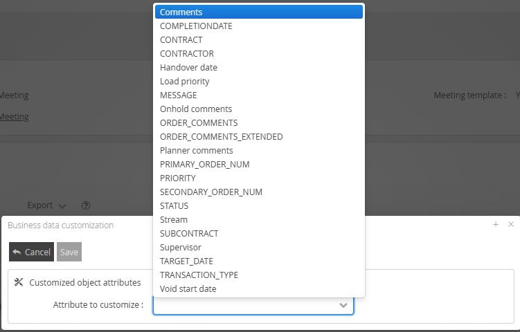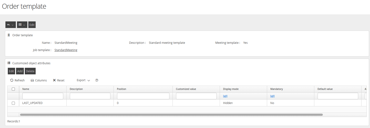 After saving any Template, clicking into the template will present you with the Customised Object Attributes menu.