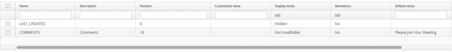 Hidden: This attribute will be hidden from the user but all other settings for this attribute will be applied as configured. Users will not be able to edit this field on meeting creation.