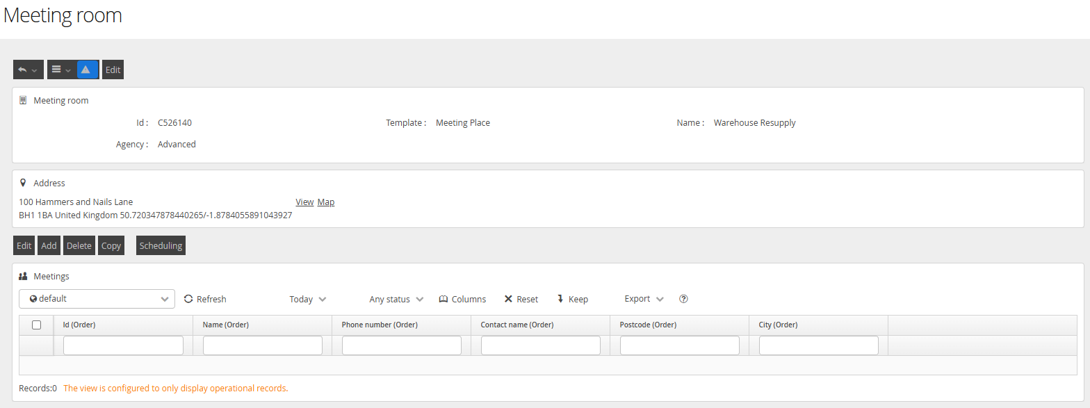 Within the Meeting Configurations, your administration team will be taken through the steps to create Meeting Locations. If you need to create additional Meeting Locations, these can be created if you have the correct Profile permissions.