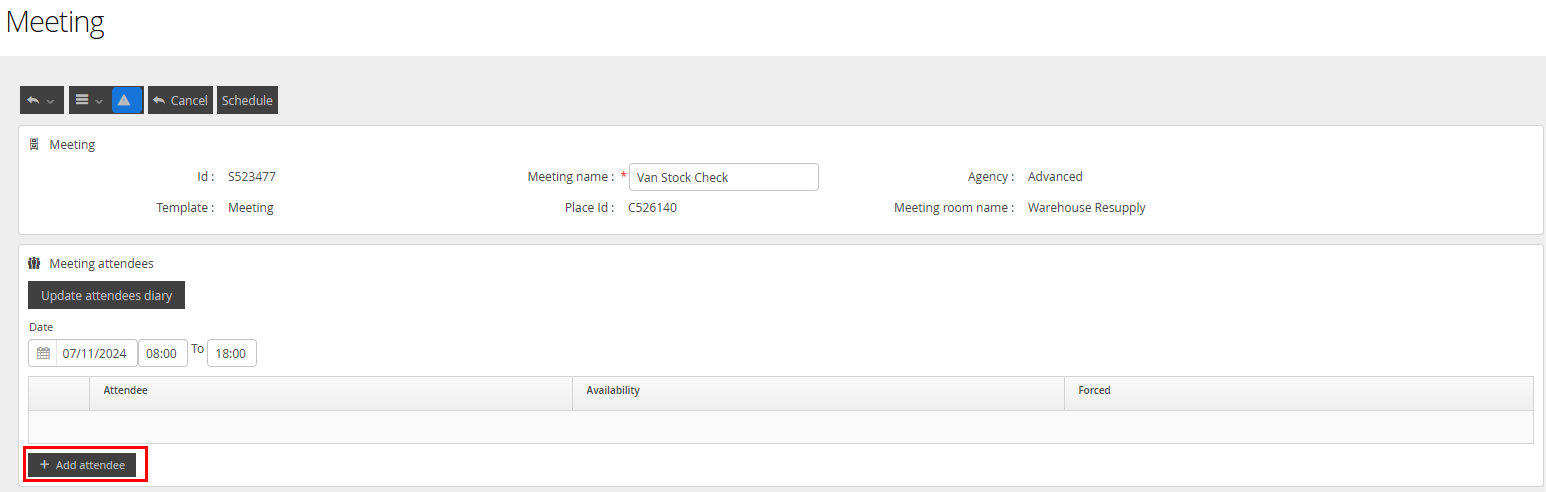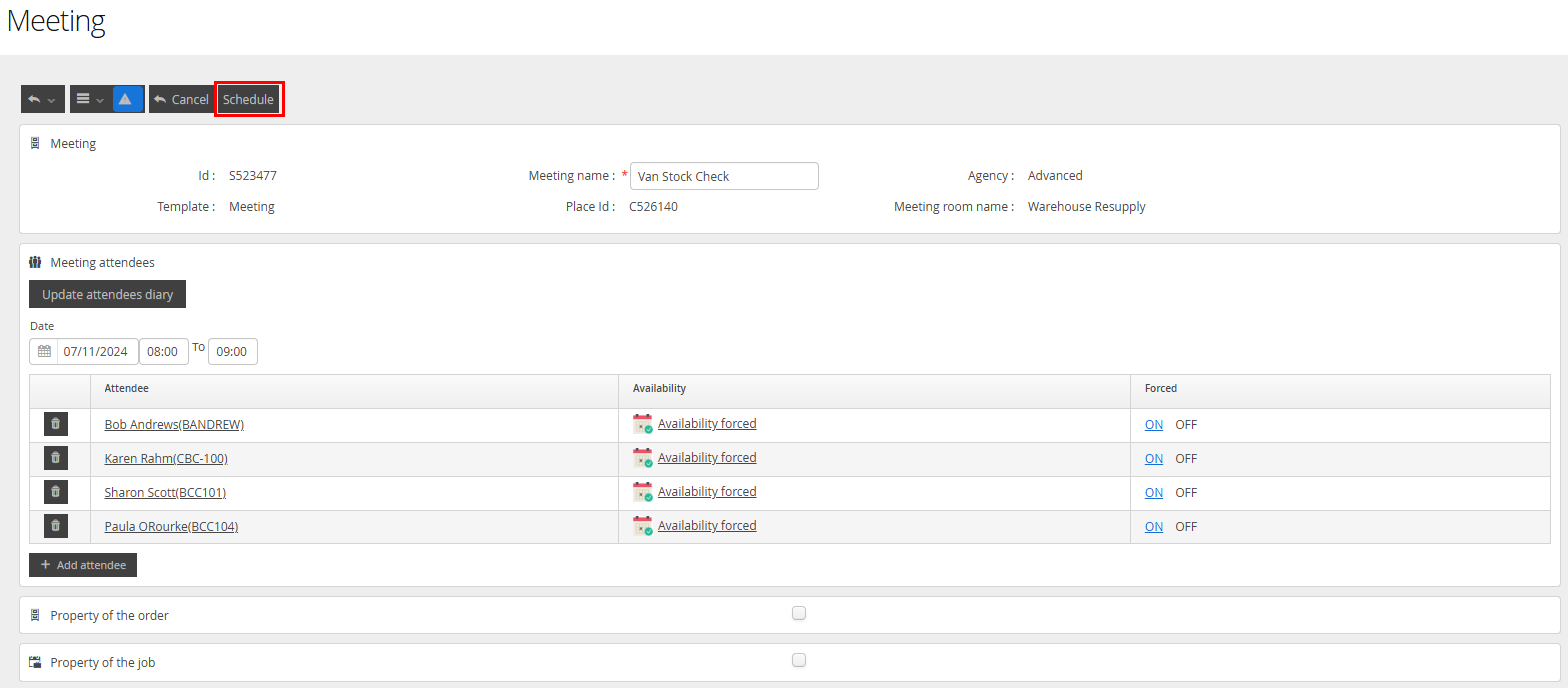 Once your changes are complete, click schedule. The meeting appointments will be updated within the Diary.