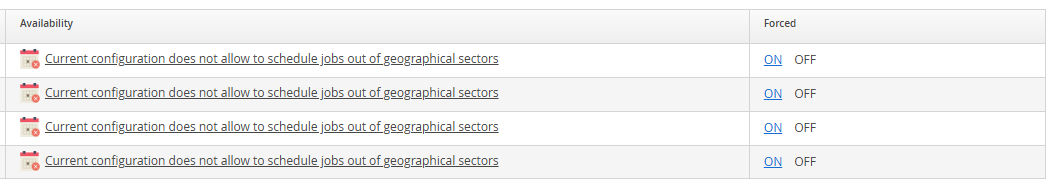 - In the case of the Worker not being within the allocated Sector, you can either use sector variability to temporarily assign the attendee to the appropriate sector, or click Yes in the force column to ignore the attendee's sectors and force the meeting into their diary.