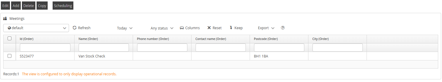 Meetings require specific configuration before you can use them to schedule Jobs within your diary. Please refer to Meetings Configuration before engaging with this process for the first time.