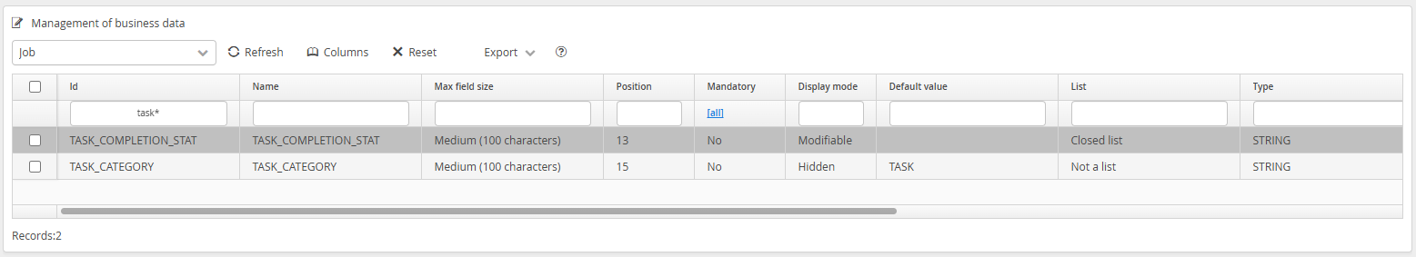 Navigate to the Job list of Business Data, and select the TASK_COMPLETION_STAT data item.