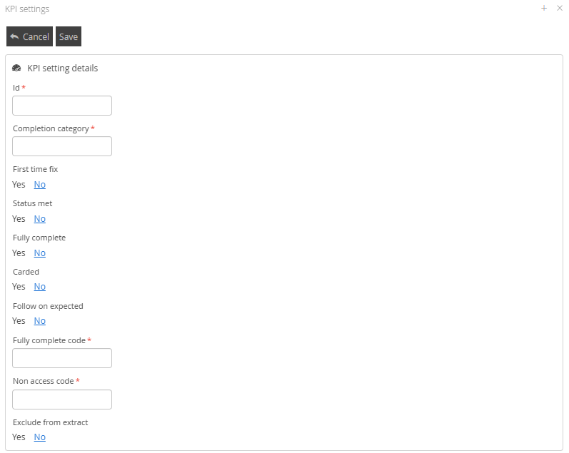 Adding or Editing an option within the Completion Reason KPI Settings will display similar options.