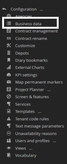 To determine your configuration values, navigate to the Business Data section within the Configuration Menu.
