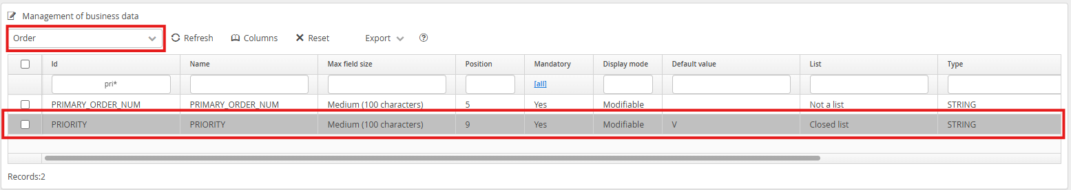 Once there, navigate to the Order Object Data items and select the PRIORITY option.