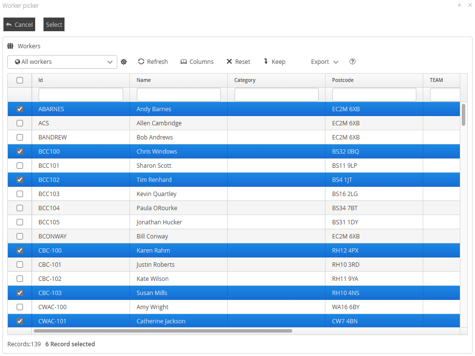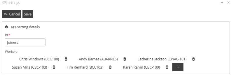 Clicking the + button will allow you to select your workers.