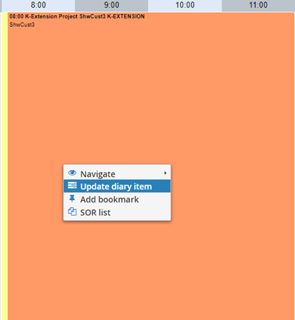 On the right click, the option to now ‘Update Diary Item’ will be displayed;