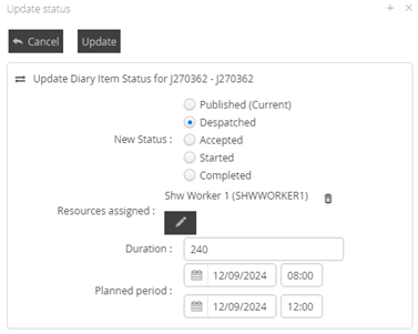 You can now update the status of published and non-published diary items, to ensure that any manual updates for any reason can be consistently provided to ensure Project Plans remain updated in line with activity.