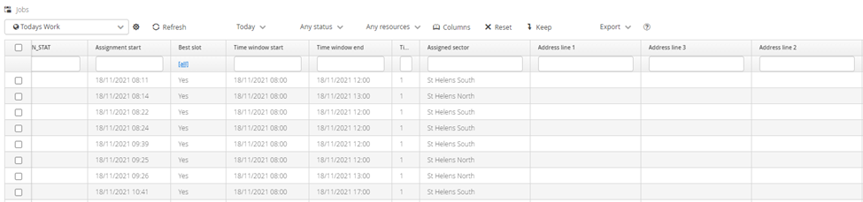 Users can modify the displayed columns to better suit their needs by selecting the Columns button. Any changes here will persist while the user is logged in, or until the user chooses a different default configured view. Logging out or changing a view will reset the configured view back to it's default configuration.