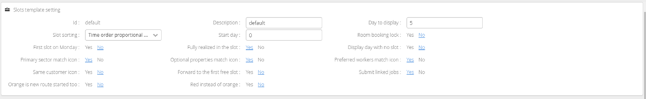 Slots Hours Setting determine which slots or time periods will be offered for the job booking and will be used to determine efficiency and best fit.