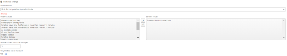 Using ‘Best slot computation by multi-criteria’ enables you to select multiple criteria from the list to be more specific.