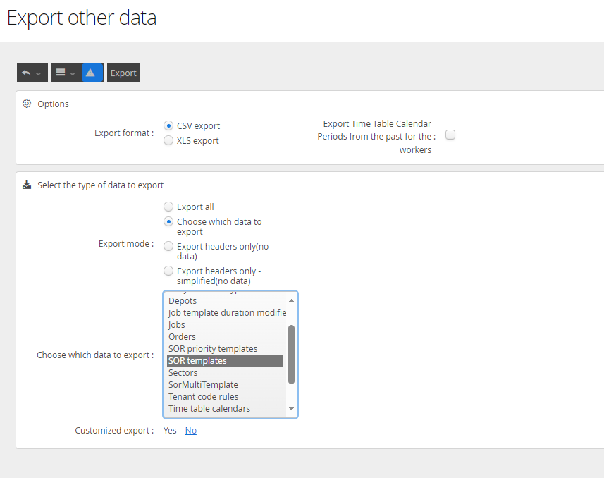 DRS > Import / Export > Other Export > Select which data to export