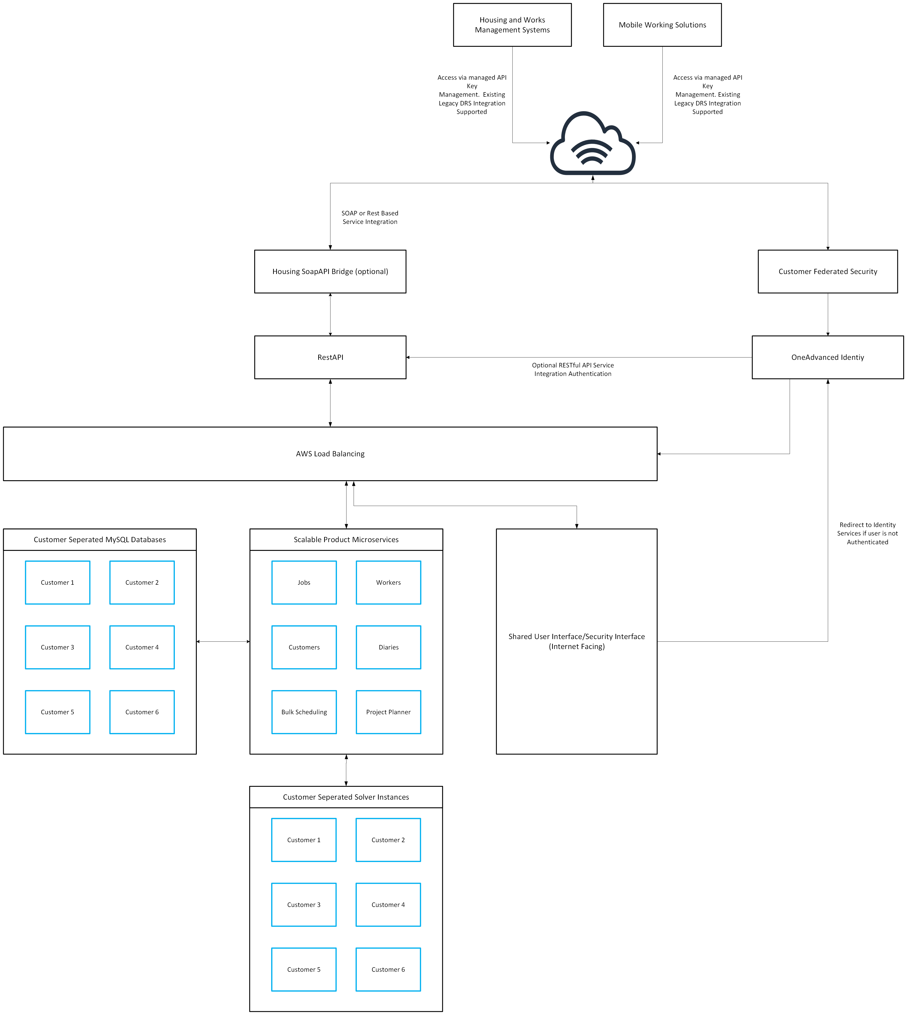 Dynamic Resource Scheduler is delivered as an internet-facing SaaS solution. Authentication for the application, customer environments and associated data is secured through the OneAdvanced Identity service, which is aligned with the OneAdvanced Trust Centre.