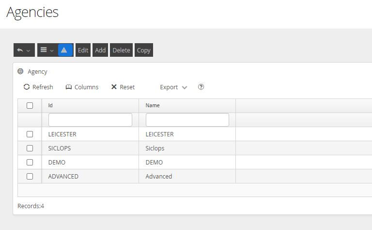 Via this window, you can Edit, Add, Delete or Copy an Agency.