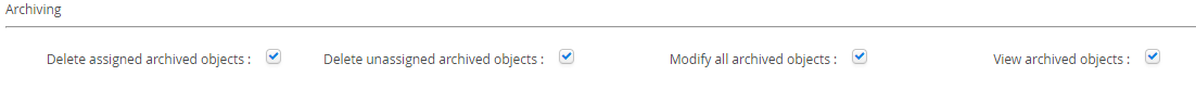 View archived objects | This permission is required if users need to be able to view, but not edit, Objects which are currently in the archive. |