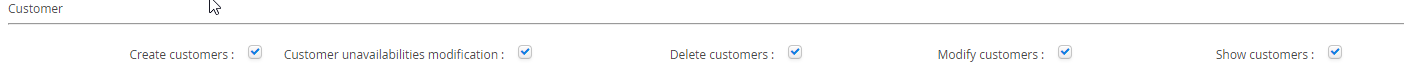 Customer unavailabilities modification | This permission is required if Users need the ability to add unavailability calendars to the Customer object. |