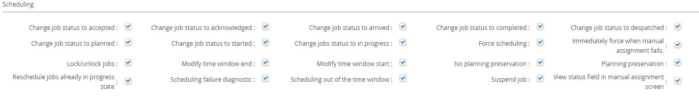 Modify time window start | This permission allows users to change the time window start for the Job Object which can effect the Planning Window in the scheduling solution |