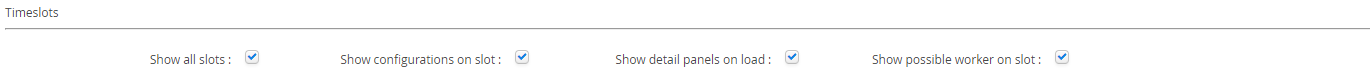 The Timeslots section controls the ability for users to engage with some of the configurable functionality within the Show Scheduler screen.