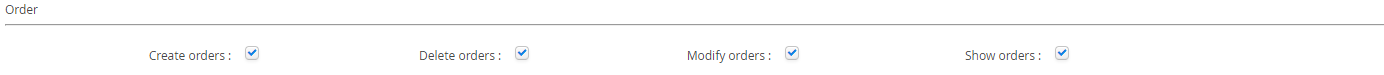 The Order section controls the ability for users to interact with the Orders menu item on the Left hand menu.
