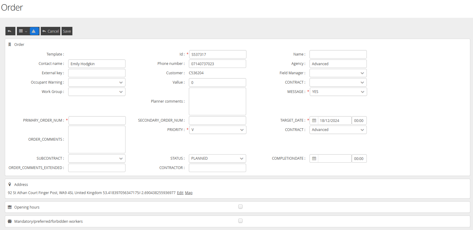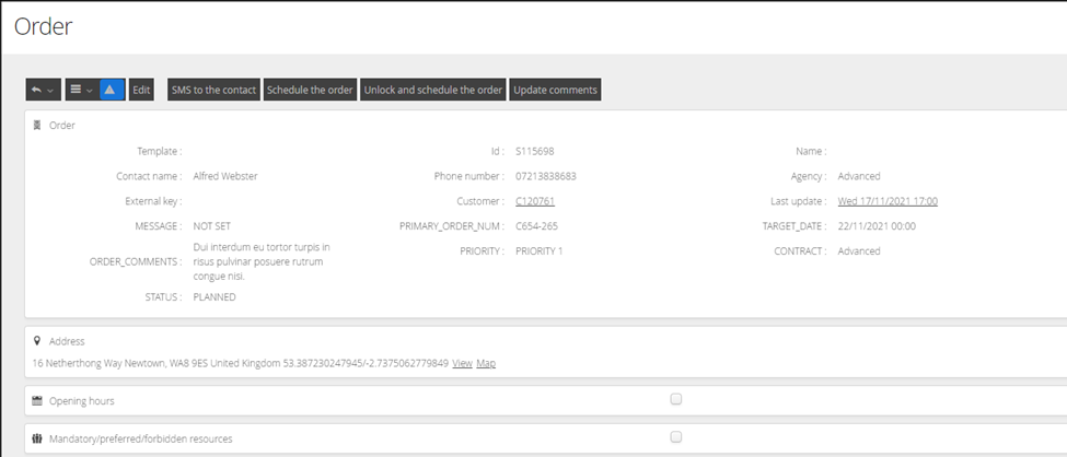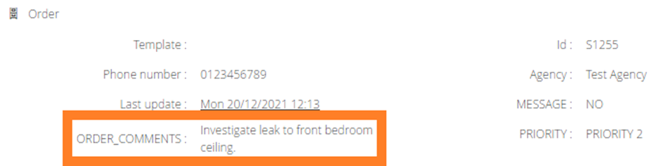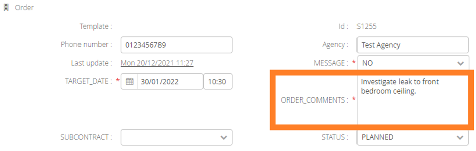 Free text comments can be held against both Orders and Jobs. Comments are typically used to record further information from either the Customer, Contact Centre, Planner or Worker.