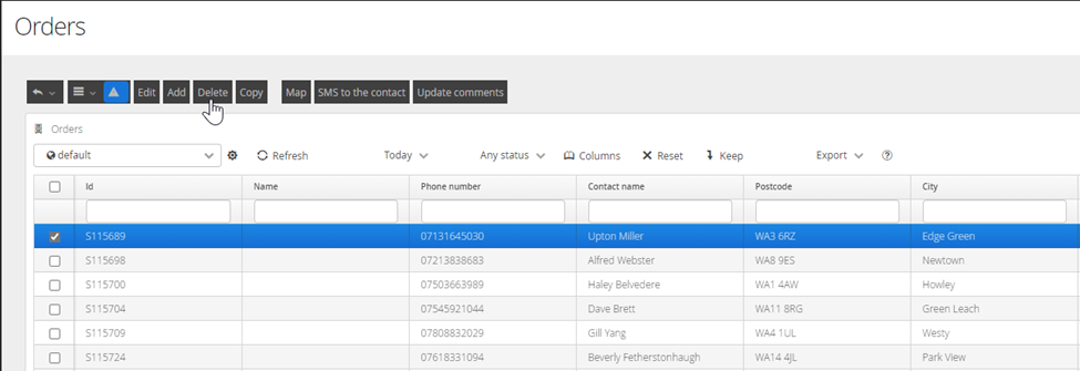 Select an Order by placing a tick in the check box and selecting Delete, this will remove the Order and any associated jobs from the system.