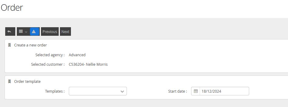 You will be offered a Customer selector to identify the Order location. You may need to search for your required customer to find the right one.