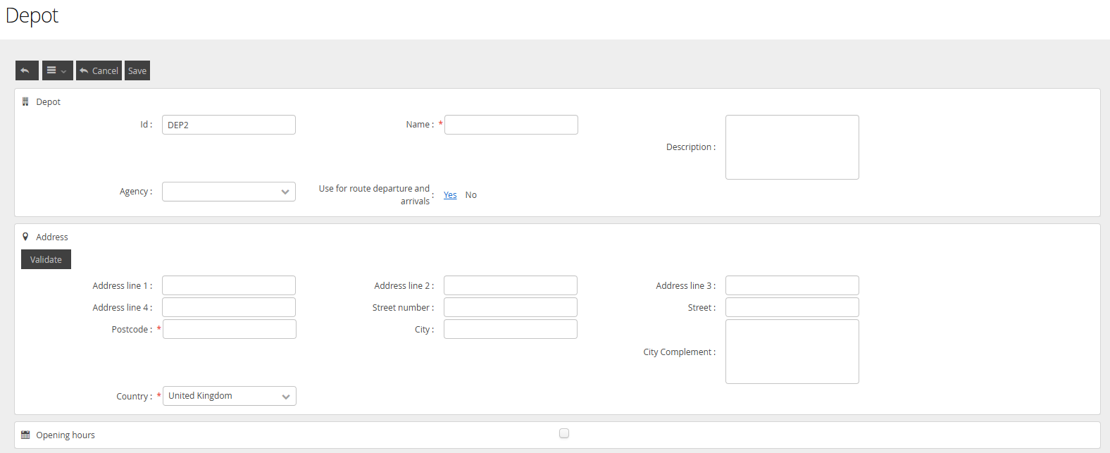 Use for route departure and arrivals – This is a Yes/No selection which defaults to No. Selecting Yes will ensure that the routes which this Depot is linked to on the Working hours calendars start and end at the depot address rather than the worker home address.