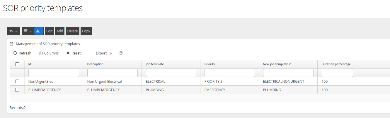 For instance, If you had an emergency plumbing job, you could use SOR Priority Templates to allow DRS to consider a larger pool of workers, than for a routine plumbing job in order to make the property safe, and then arrange for further works to be carried out at a later date.