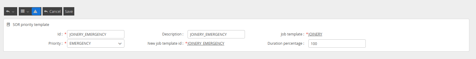New Job Template ID | Select the new Job Template that the Job will change to based on the Priority (e.g., Joinery Emergency) |