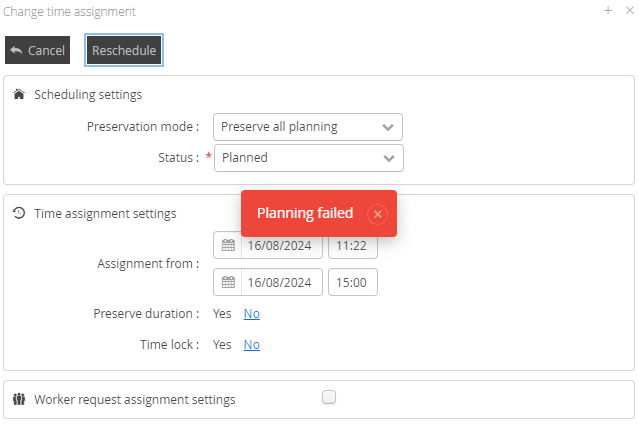 If you receive this message, your proposed planning change requires you to force the appointment into the diary as it is not supported by the scheduling logic.