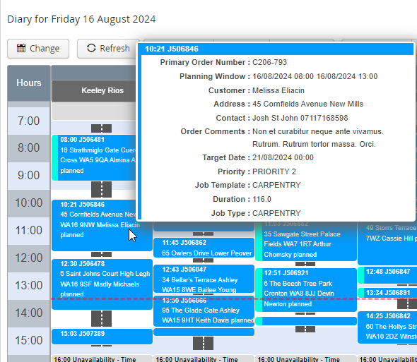 Individually checking tasks that you believe may be effected can also give you an opportunity to catch issues before the schedule is set in motion for the day. By reviewing the diary itself, this can help highlight potential scheduling conflicts.