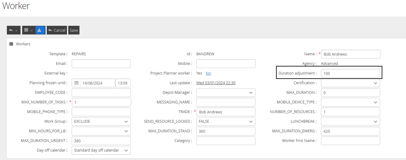 Resources Lock | Can be used to lock the worker to the appointment if the same worker is required to return to the next appointment. (Recommend using this sparingly as this can affect the ability to schedule/optimise) |